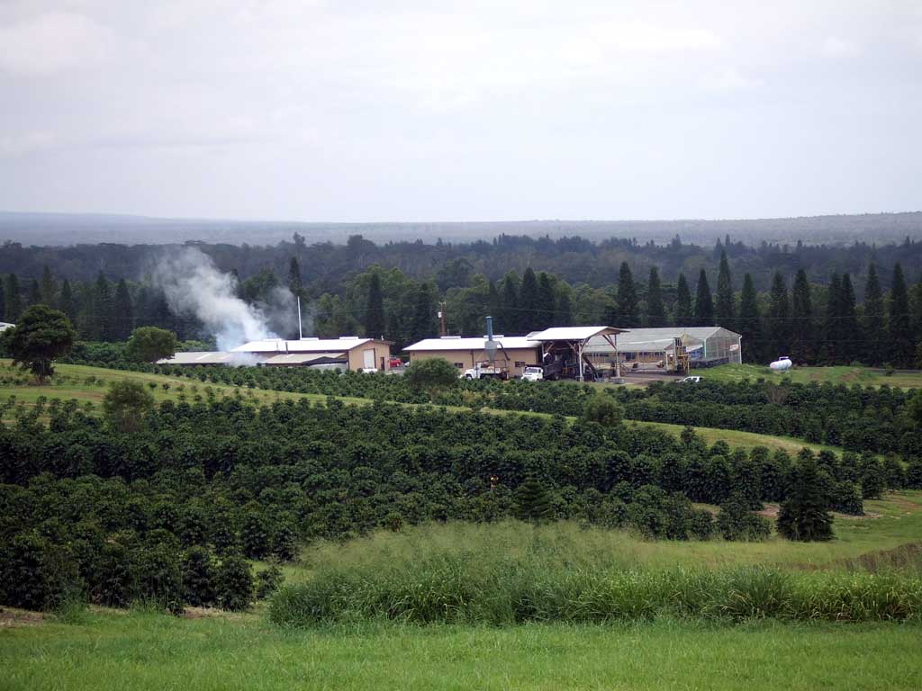 ハワイと言えば、キングオブコーヒーの異名を持つコナです。ところが、コナ地区より評価の高い地区があります。マウナ・ロア山、ハワイ最高峰マウナ・ケア山が連なる山麗の、なだらかな西側斜面がコナ地区で、カウ地区は南斜面に位置します。コーヒーの生育条件に最適の有機質に富む肥沃な土地と、水捌けの良い火山質土壌・常夏の国と言われるように、熱帯貿易風の影響を受け適度な雨量があります。世界のコーヒー・マニア垂涎の的になっているのがコナですが、更に希少でコナよりも評価の高いカウコーヒーです。ハワイ有数の大富豪エドムンド・オルソン氏が所有するカウコーヒーミルです。自社農園の栽培面積は今のところ40エーカーですが、1800エーカーの土